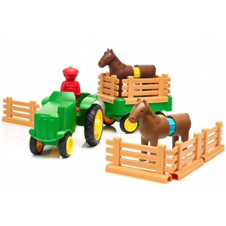 Embarquez dans le tracteur et en route pour la ferme grâce à ce jeu aimanté. Les animaux, le tracteur et sa remorque se montent comme un jeu de construction grâce aux bâtonnets et aux boules aimantés.